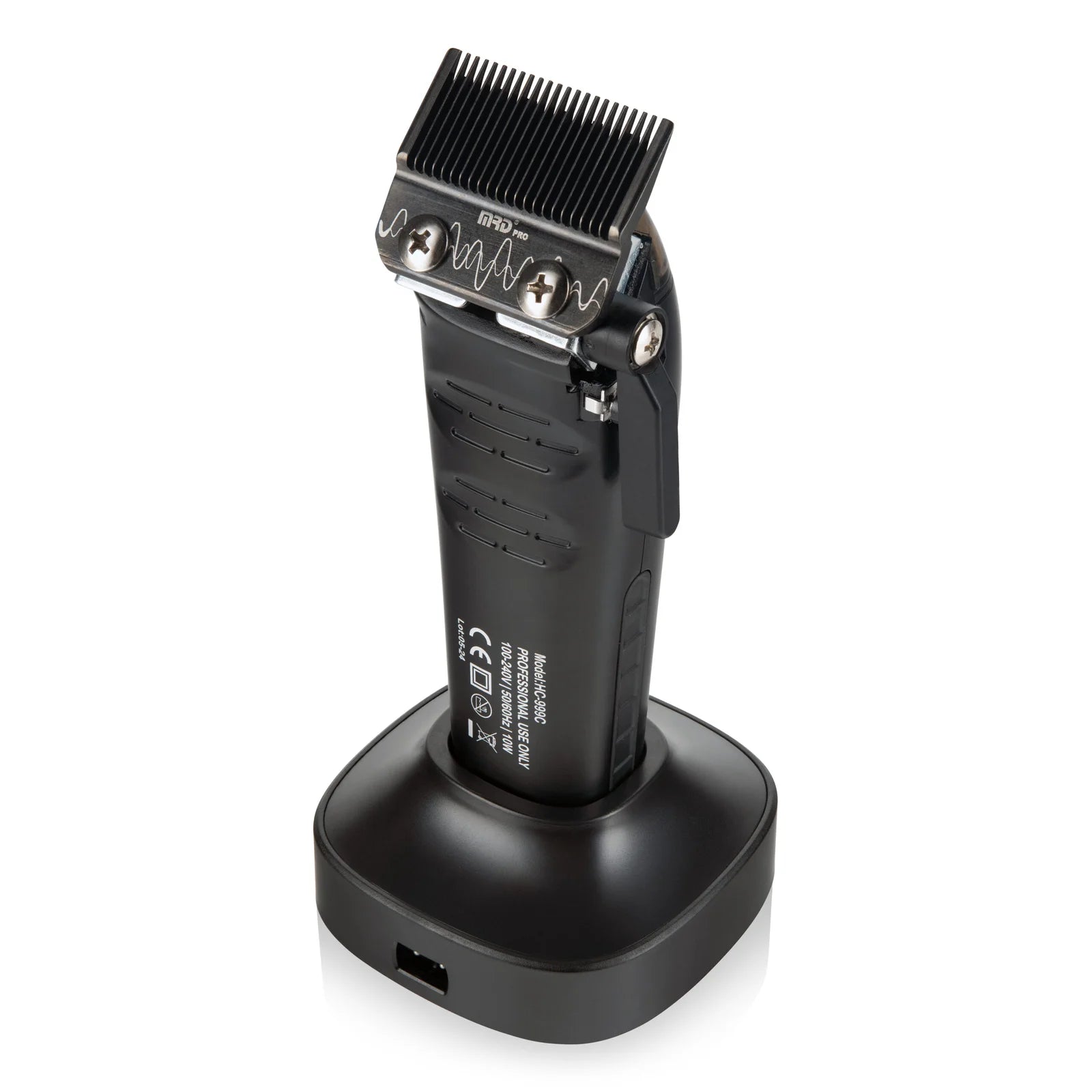 Su estructura completamente metálica no solo proporciona una estética robusta y elegante, sino que también reduce el ruido, absorbe mejor las vibraciones y ofrece una alta resistencia a impactos, ideal para el uso intensivo en barberías o salones profesionales.