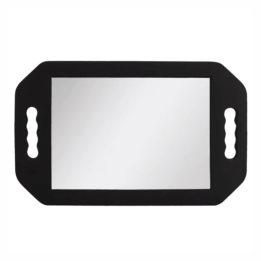 Espejo diseñado para uso profesional, con marco de silicona flexible que brinda mayor protección y durabilidad. Su acabado elegante combina funcionalidad y seguridad, ideal para salones y espacios de trabajo que buscan una imagen moderna y sofisticada. Resistente, práctico y fácil de manejar.