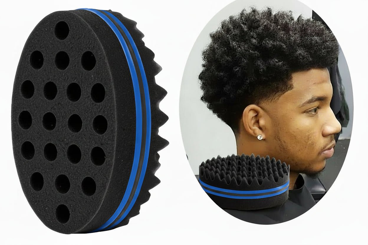 Esponja para cabello afro profesional de esponja ecológica que crea giros, rastas y bobinas con acabado uniforme. Permite peinados rápidos y definidos, fácil de usar sobre cabello húmedo.