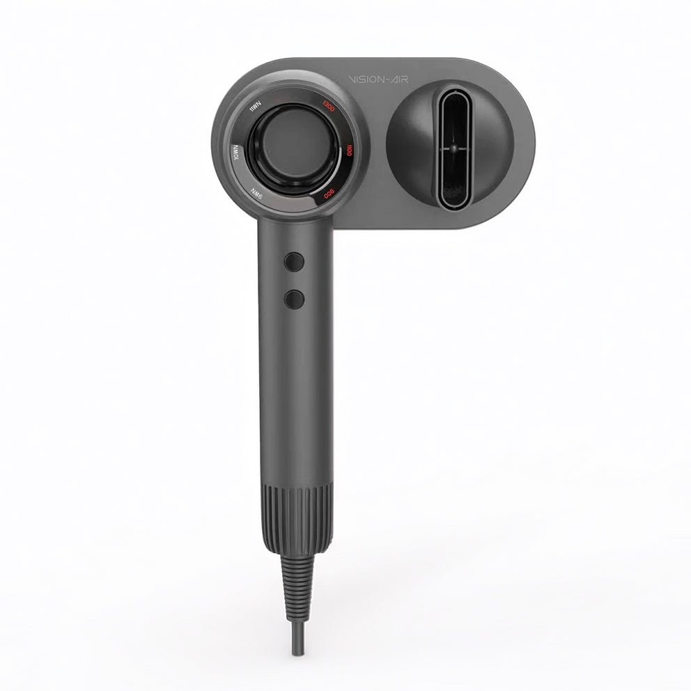 Soporte resistente con instalación mediante adhesivo de doble cara. Fijación magnética del secador y la boquilla. Apto para superficies lisas. No requiere perforación.